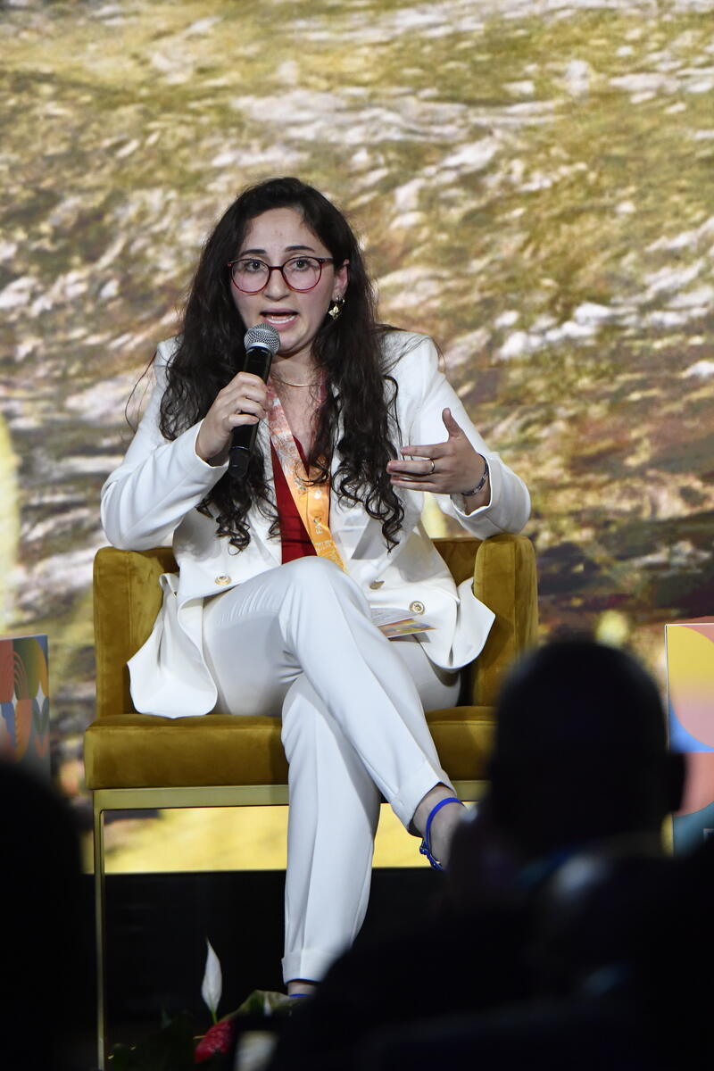 13 October 2025. FAO Headquarters, Rome, Italy. Shalala Hasanova, member of the World Food Forum Youth Policy Board 2025-2026 speaks during the World Food Forum Grand Opening at the World Food Forum 2025.