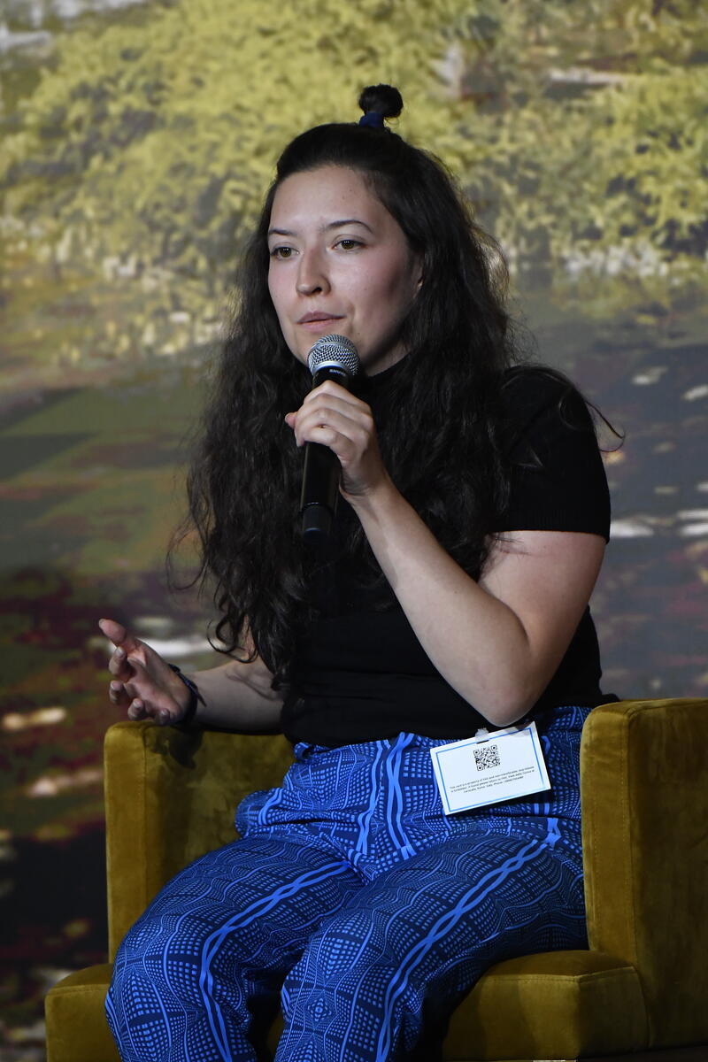 13 October 2025. FAO Headquarters, Rome, Italy. MarÃa Valentina Forero from Lixilab, youth food lab global cohort 2025 speaks during the World Food Forum Grand Opening at the World Food Forum 2025.