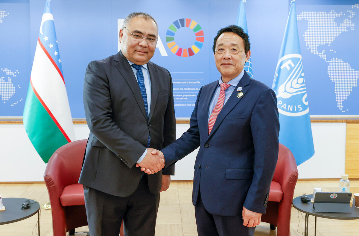 ITALY 2025 - FAO Director-General QU Dongyu meeting Uzbekistan Minister for Agriculture Abdurahmonov Ibrohim Yulchievich.