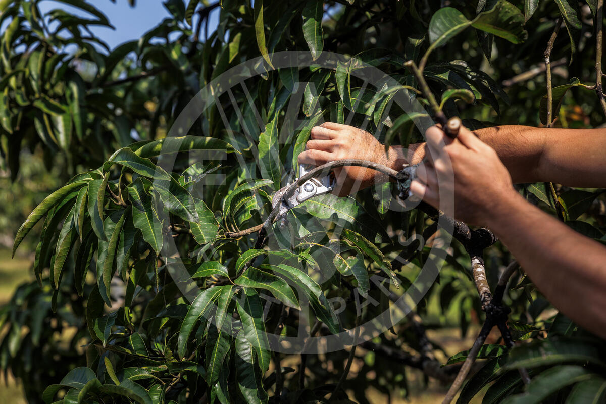 20 February 2025. Nochchiyagama, Sri Lanka.A mango tree is pruned on a farm receiving Chinese agricultural expertise and technological support.