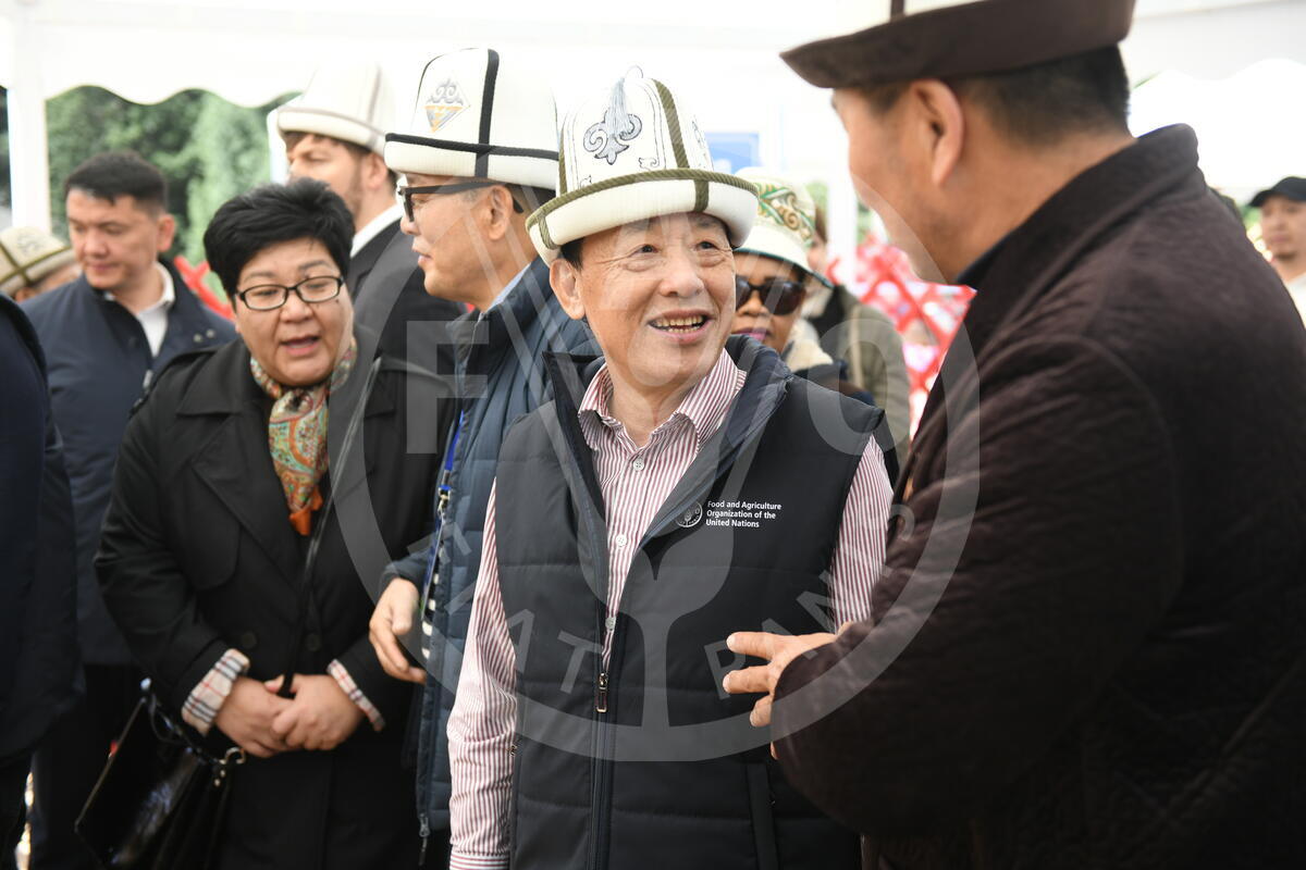 25 April 2025. Ala-Archa National Park, Kyrgyzstan. FAO Director-General QU Dongyu views Mountain products during his visit to Ala-Archa National Park, Kyrgyzstan.