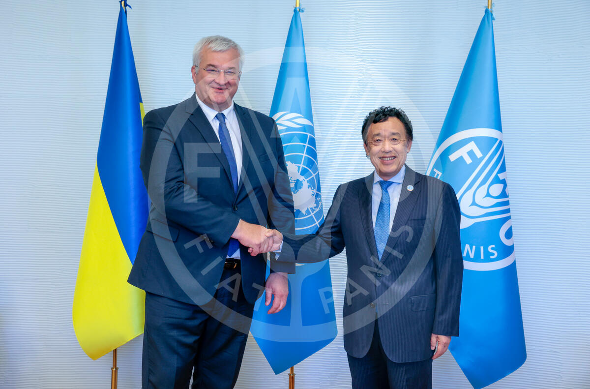 ITALY 2025 - FAO Director-General QU Dongyu meeting Ukraine Minister Foreign Affairs Andrii Sybiha.