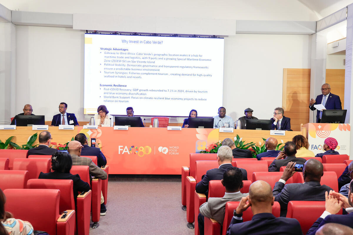 15 October 2025, Rome, Italy. A general view during the Investment Plan Presentations: Cabo Verde, Chad and Somalia. Hand-in-Hand (HIH) Initiative Investment Forum 2025, World Food Forum (WFF) 2025. The fifth edition of the World Food Forum (WFF), the largest annual gathering of agrifood systems stakeholders globally, runs at FAO headquarters in Rome from 10 to 17 October 2025. FAO Headquarters (Austria Room).