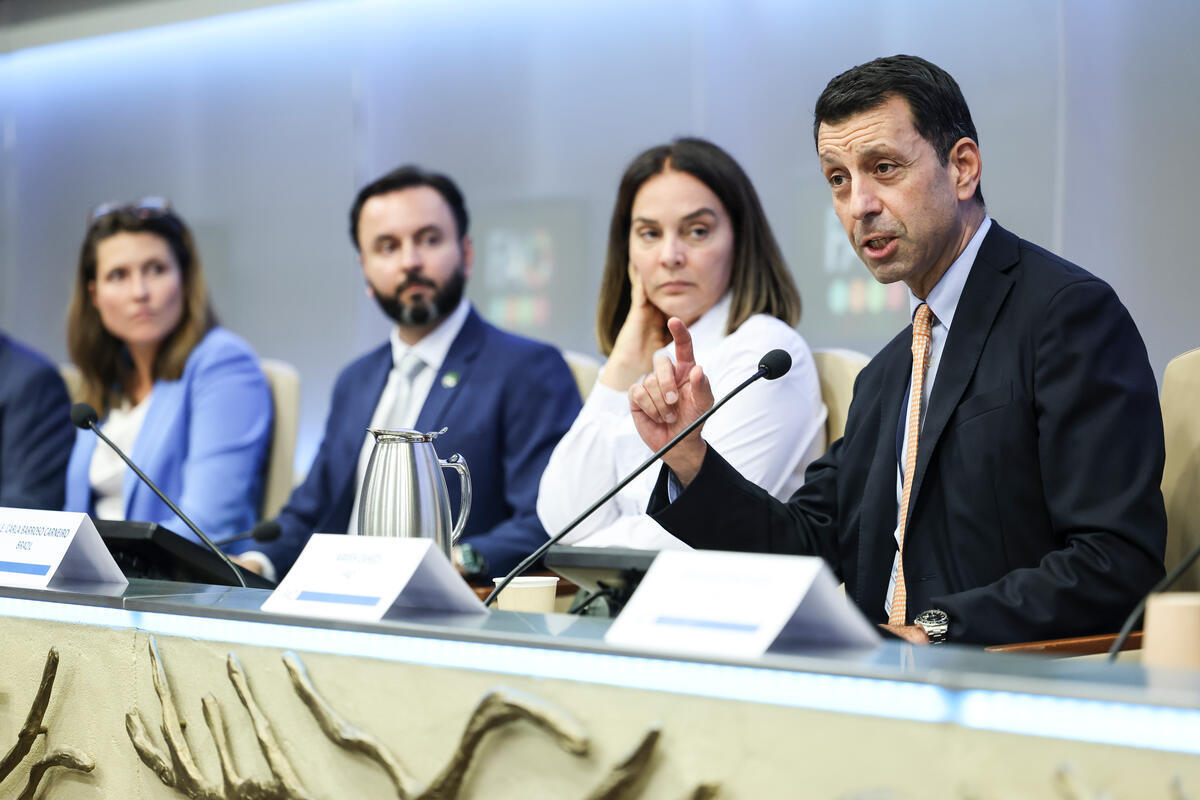 09 September 2025, Rome, Italy. Kaveh Zahedi Director Office of Climate Change, Biodiversity and Environment, FAO, (1st from R) delivers closing remarks during the Soft launch of RAIZ, Resilient Agriculture Implementation for net-Zero land degradation. FAO Headquarters (Sheikh Zayed Centre).