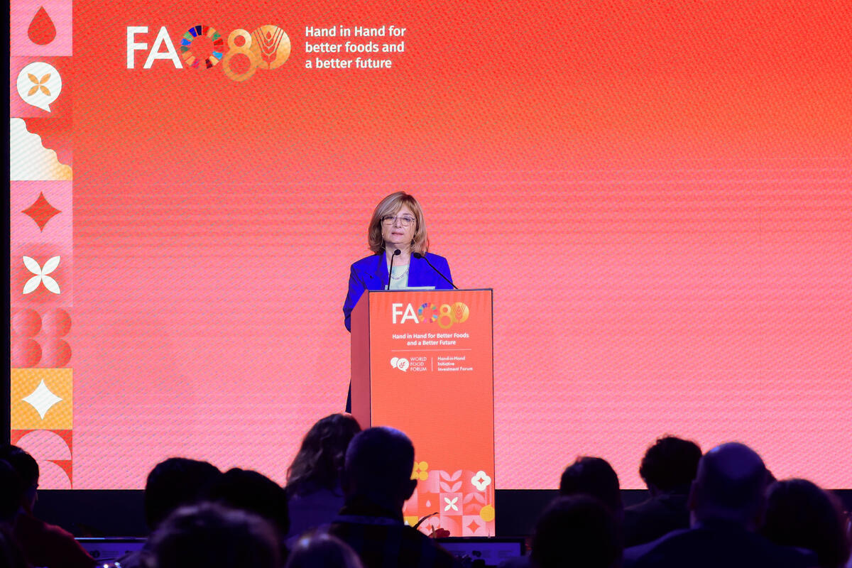 14 October 2025, Rome, Italy. Gelsomina Vigliotti, Vice President, EIB. Official opening of the Hand-in-Hand (HIH) Initiative Investment Forum 2025. World Food Forum (WFF) 2025. The fifth edition of the World Food Forum (WFF), the largest annual gathering of agrifood systems stakeholders globally, runs at FAO headquarters in Rome from 10 to 17 October 2025. FAO Headquarters (Plenary Hall).