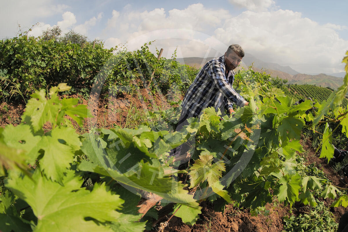 TAJIKISTAN, 2025. Growing grapes at vineyard in Almosi Valley