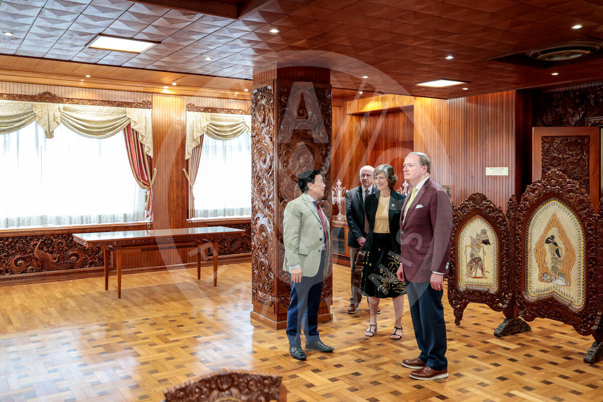 24 June 2025. Rome, Italy. FAO Director-General QU Dongyu AO Director-General QU Dongyu (L) shows the Indonesia Room to Mississippi State University President, Mark Keenum. FAO Headquarters (Indonesia Room).