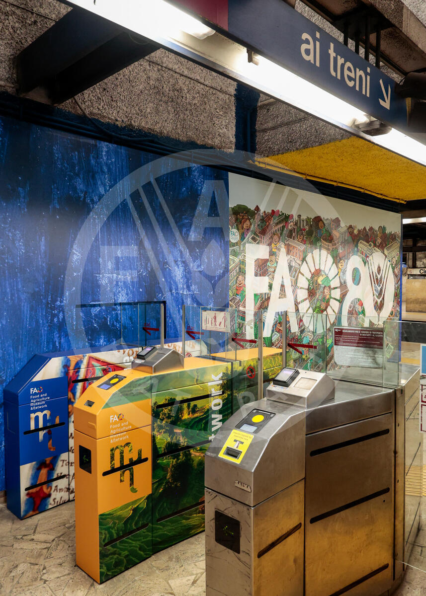 23 June 2025. Rome, Italy - Installation in progress inside the Circo Massimo metro station for the collaboration FAO - ROMA CAPITALE.
