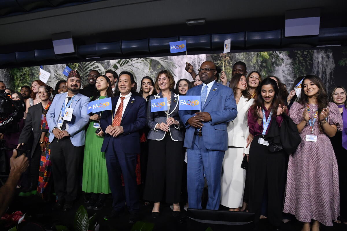 17 October 2025. FAO Headquarters, Rome, Italy. Team leaders join the stage alongside FAO Director-General QU Dongyu during the World Food Forum 2025 Closing Ceremony. World Food Forum (WFF) 2025.