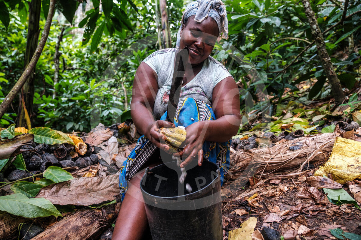 SAO TOME E PRINCIPE, 2025. Removing cocoa beans from pod