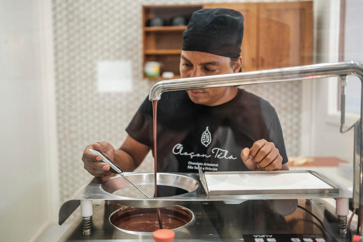 SAO TOME E PRINCIPE, 2025. Chocolatier at work