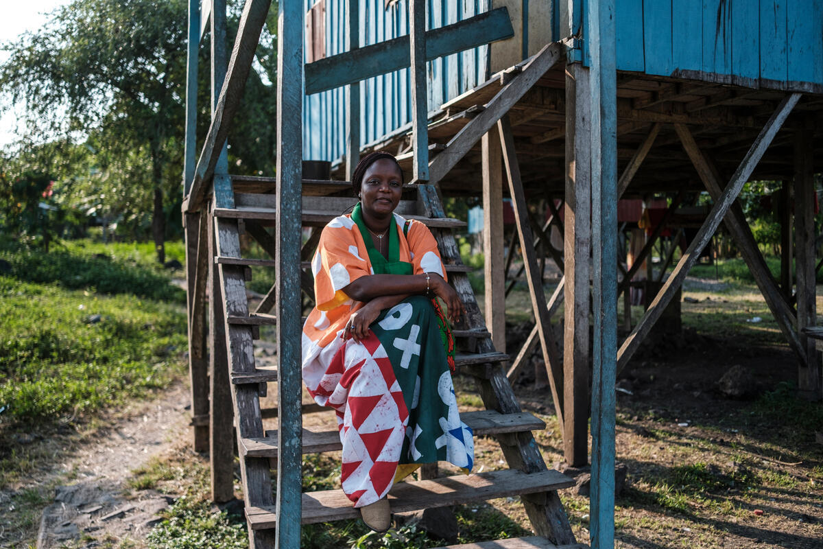 04 June 2025. Guadalupe, Sao Tome e Principe. Chef Binta is portrayed in front of a house.