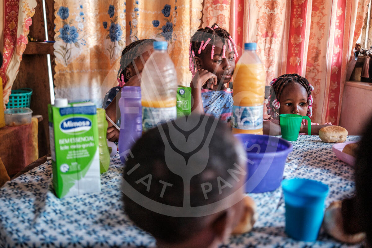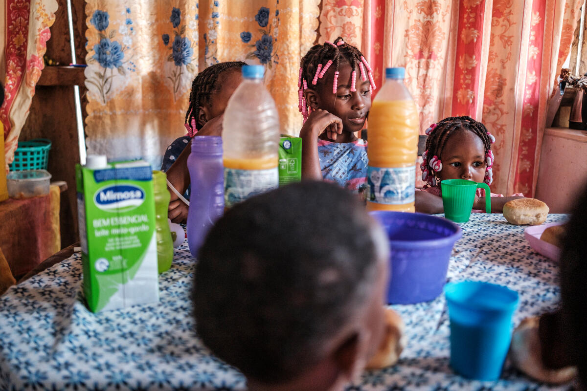 03 June 2025. Praia das Conchas, Sao Tome e Principe. Camila Varela De Carvalho, farmer, prepares breakfast for her children at her house.