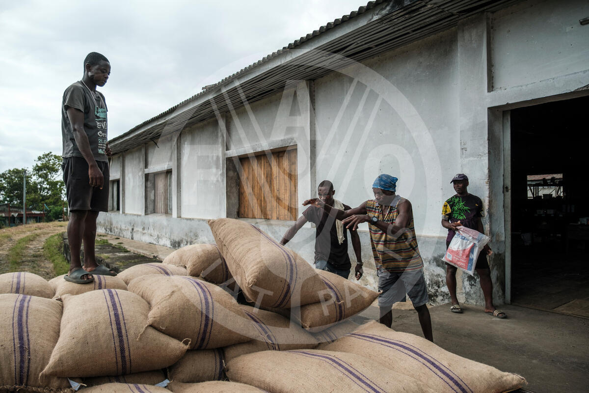 SAO TOME E PRINCIPE, 2025. Transporting sacks of cocoa beans
