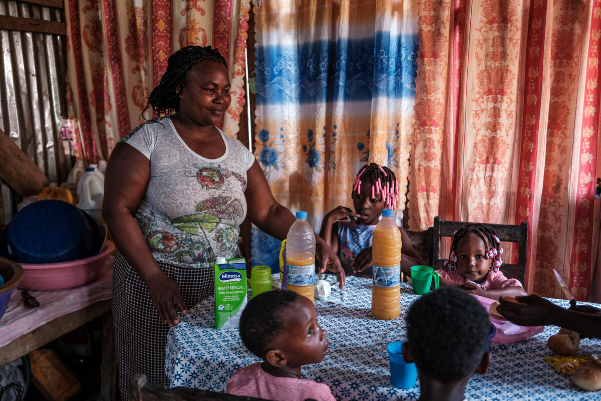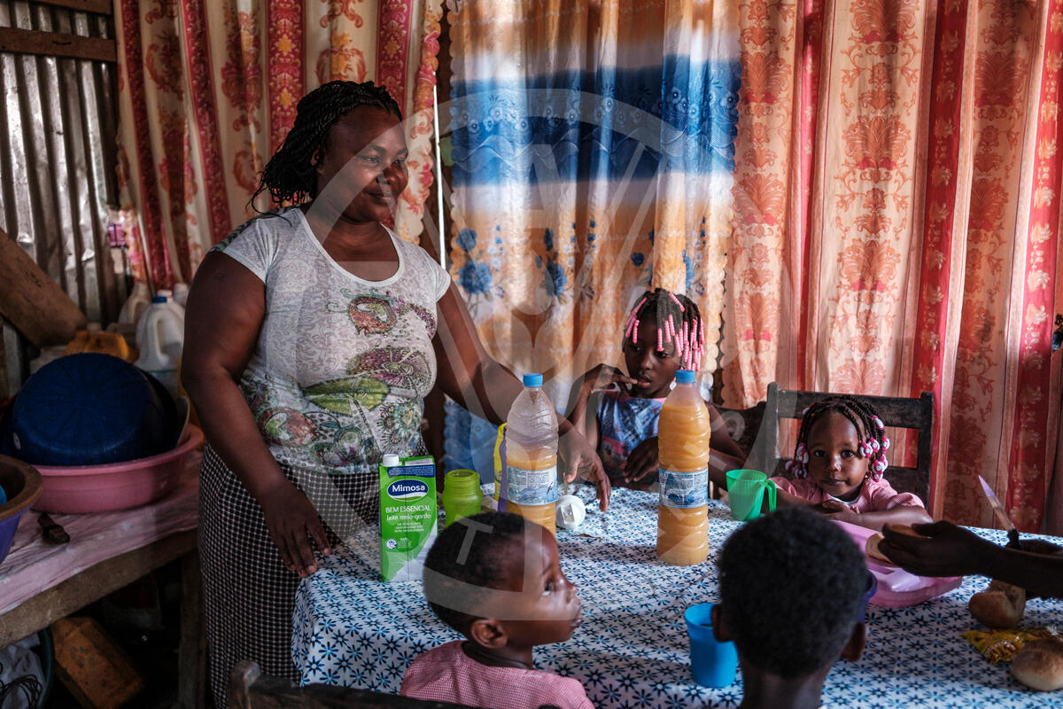 03 June 2025. Praia das Conchas, Sao Tome e Principe. Camila Varela De Carvalho, farmer, prepares breakfast for her children at her house.