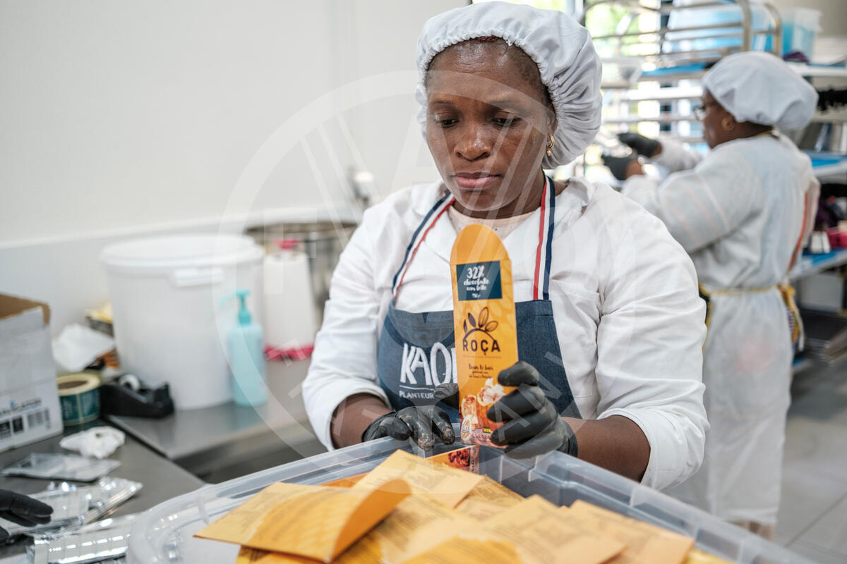 SAO TOME E PRINCIPE, 2025. Packaging chocolate at chocolate factory