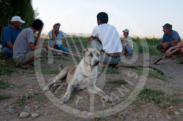 Kyrgyzstan, Jelal-Abad region. Farmers in the field.