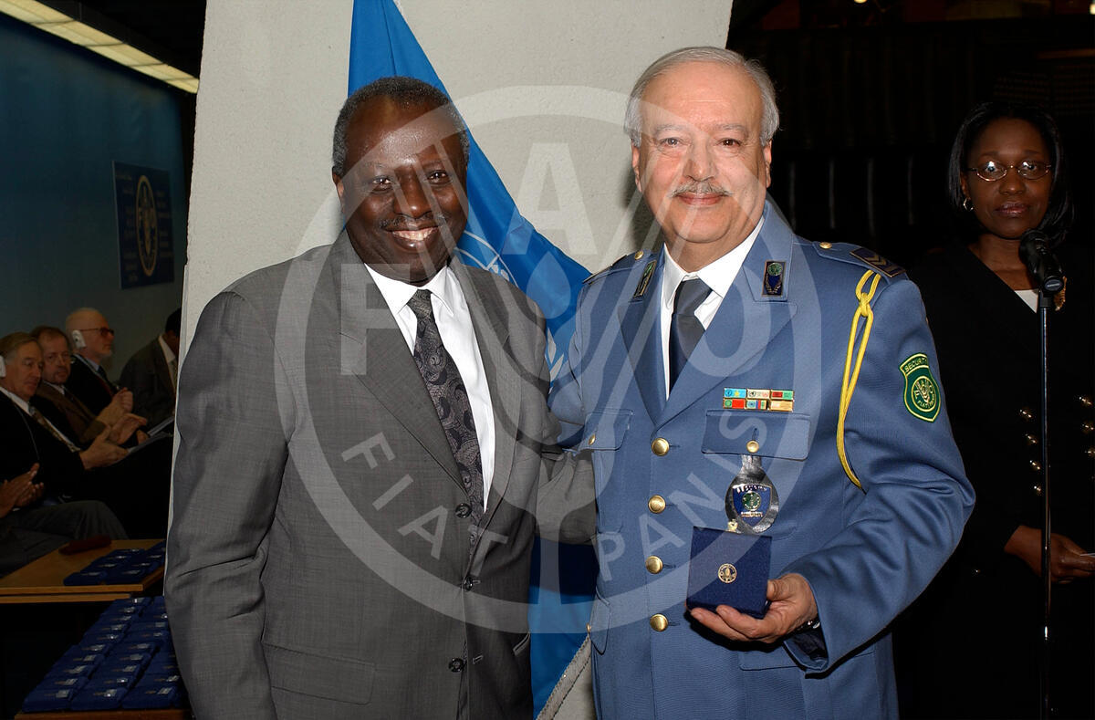 25 October 2005, Rome - FAO Director-General Jacques Diouf presenting the 25-year seniority award to Mr. Alessio.