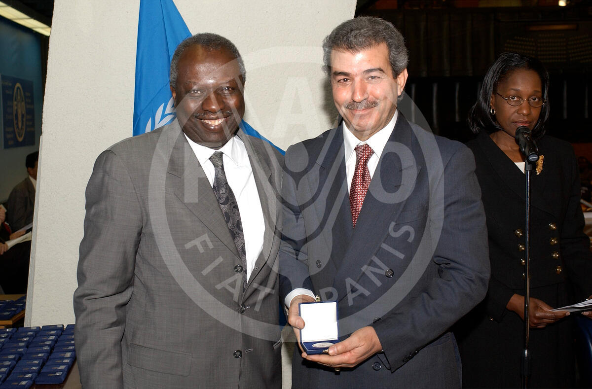 25 October 2005, Rome - FAO Director-General Jacques Diouf presenting the 25-year seniority award to Mr. Boutrif.
