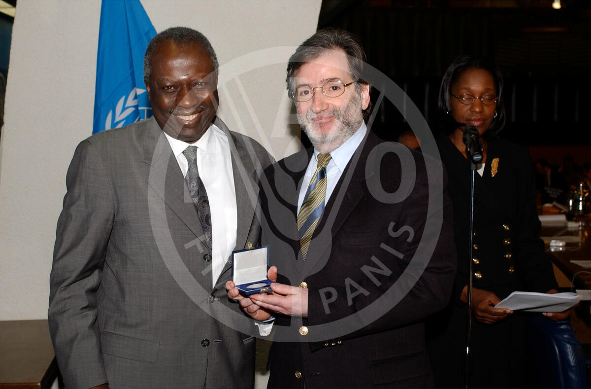 25 October 2005, Rome - FAO Director-General Jacques Diouf presenting the 25-year seniority award to Mr. Valente.
