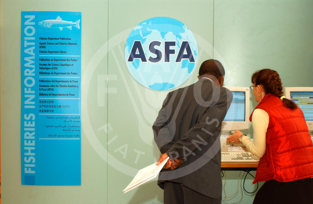 25 February 2003, Rome - Banners, signage and Stands are on display for the opening of the Committee on Fisheries (COFI), at FAO Headquarters.