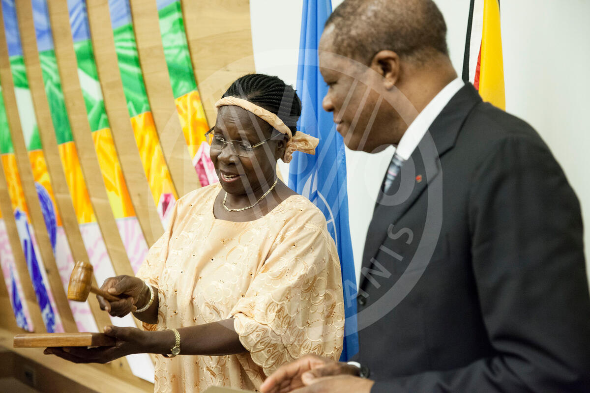 08 February 2017, Rome, Italy - (From Left to Right) H.E. Dinah Grace Akello, H.E. Dominique Awono Essama, Ambassador Permanent Representative Republic of Cameroon to FAO. Africa Regional Group Plenary Meeting - Annual Handover Session, FAO headquartes (Ethiopia Room).