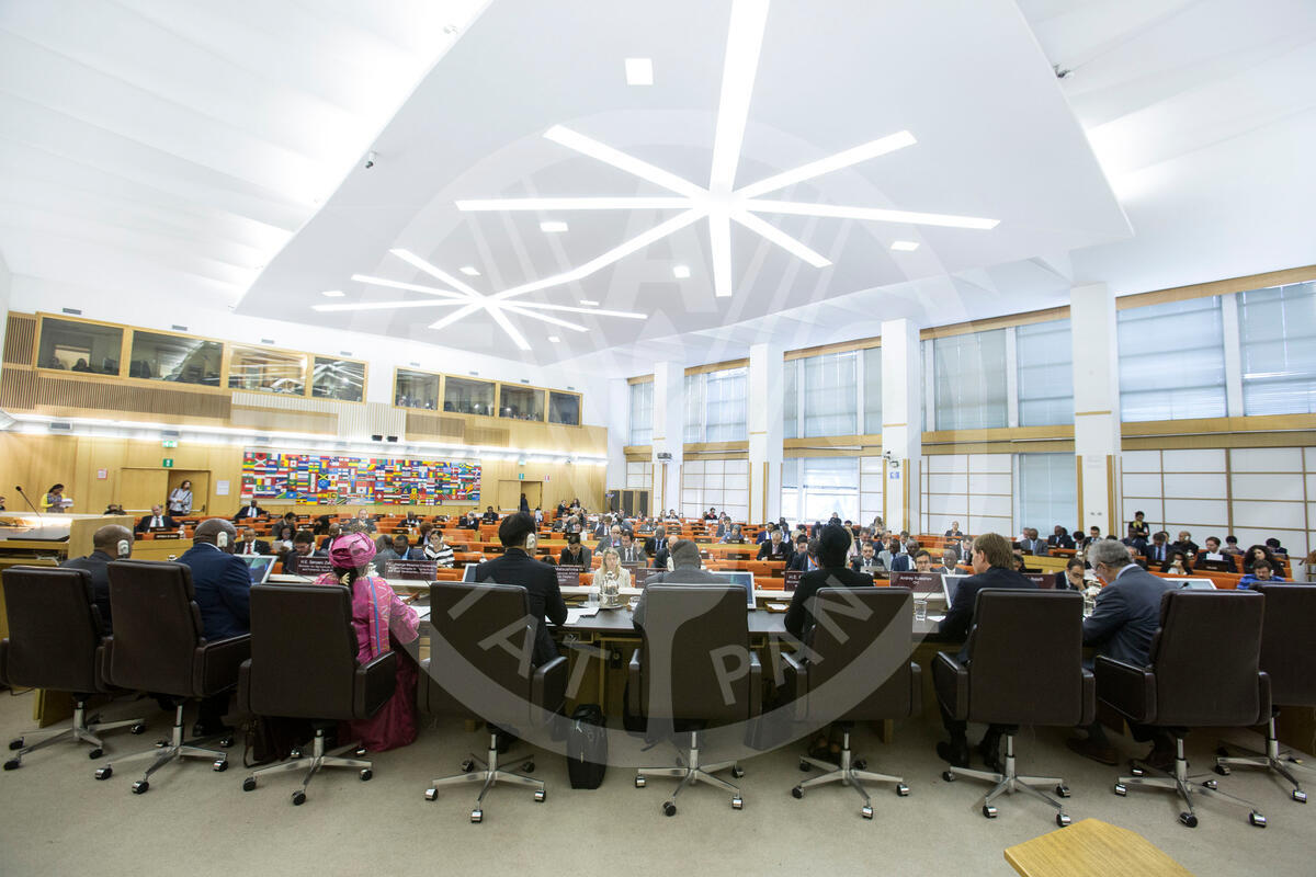 03 October 2016, Rome, Italy - (Left to right) Roberto RIdolfi, EU, Andrey Kuleshov, CFC, Pelate Niyokuru, Minister for Commerce,Indurtand Tourism, Burundi, Samuel K Gayi, Chairperson, Head of the Special Unit on Commodities, UNCTAD, Hiromichi Matsushima, Vice-Minister for International affairs, Minister of Agriculture, Forests and Fisheries, Japan, Ananga Messina Clementine, Minister Delegate for Agriculture and Rural Development, Cameroon, Senzeni Zokwana, Minister for Agriculture, Forestry and Fisheries, South Africa, Duminda Dissanayake, Minister for Agriculture, Sri Lanka. Parallel Roundtables - Roundtable I - Commodity dependence diversification and value chain development, FAO Headquarters (Redd room)