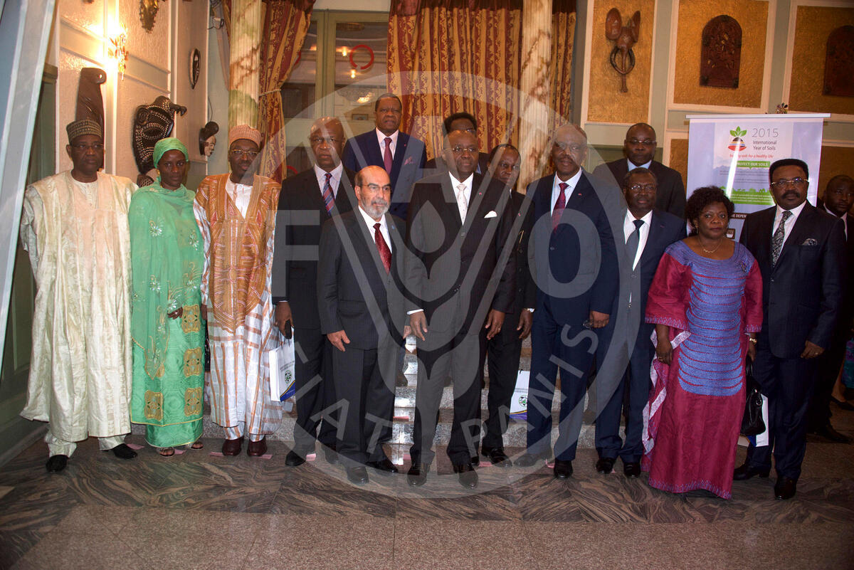 4 September 2015 , Cameroon's Ministry of External Relations in Yaounde (Cameroon): FAO Director-General José Graziano da Silva and several ministers of Cameroon pose together after the signing of two agreements, one establishing a cooperation program 20 million US dollars between FAO and Cameroon, the other on the establishment of a partnership and liaison office of FAO in Cameroon.