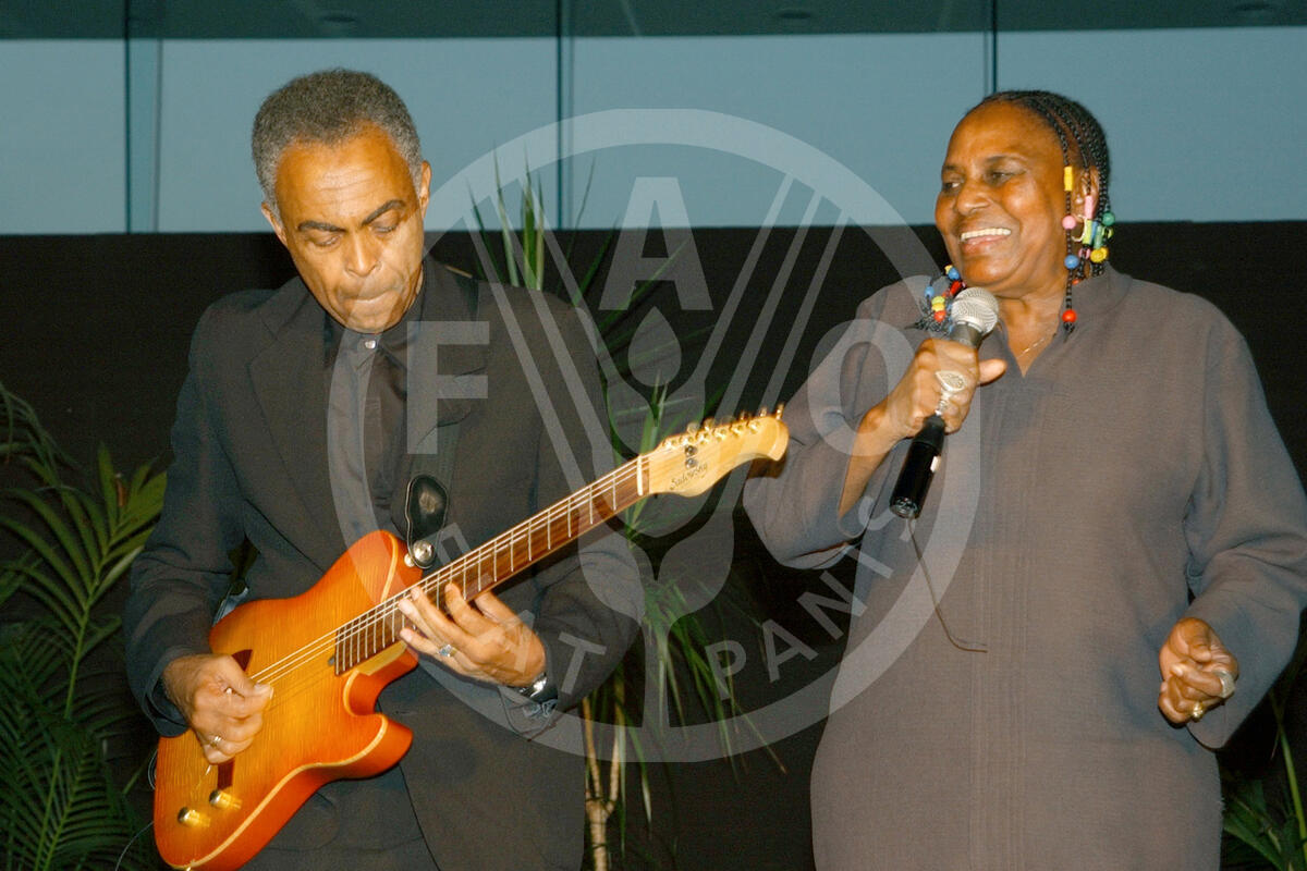 16 October 2001, Rome - Miriam Makeba (R) singing with Gilberto Gil during a concert following the FAO Goodwill Ambassadors Nomination Ceremony at FAO Headquarters.