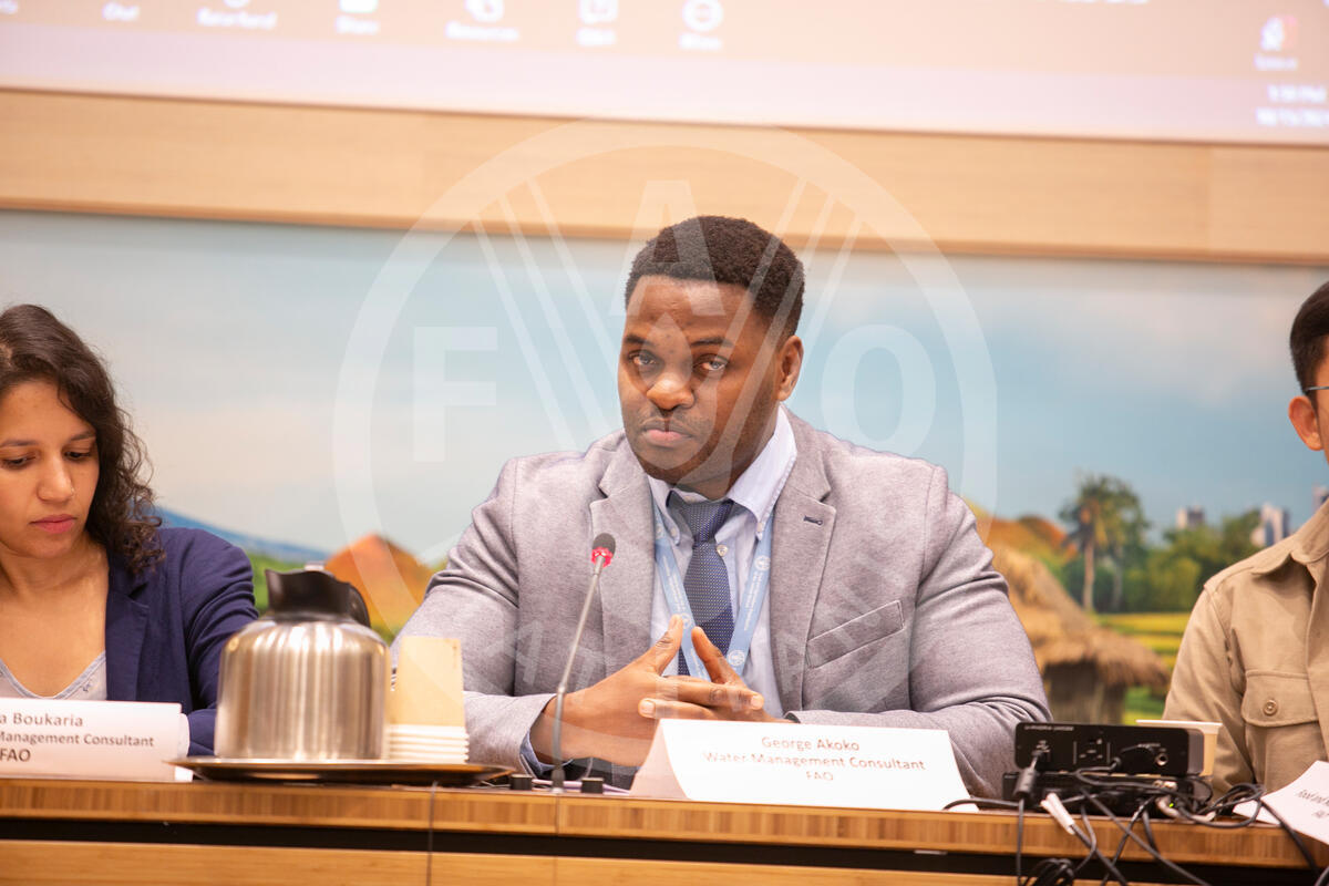 15 October 2024. Philippines Room, FAO Headquarters, Rome, Italy. George Akoko, Water Management Consultant at FAO, panelist during the WFF side event on global and regional water strategies for sustainable agrifood systems.