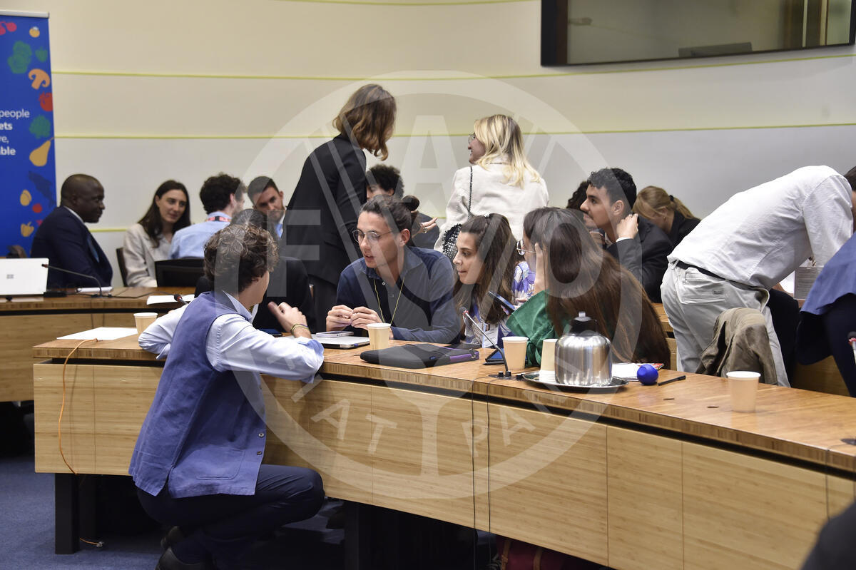 15 October 2024. Philippines Room, FAO Headquarters, Rome, Italy. The attendees of the World Food Forum Empowering Communities: Practical models for transforming agrifood systems event in the Philippines Room get together to take on the role of a roundtable of experts.