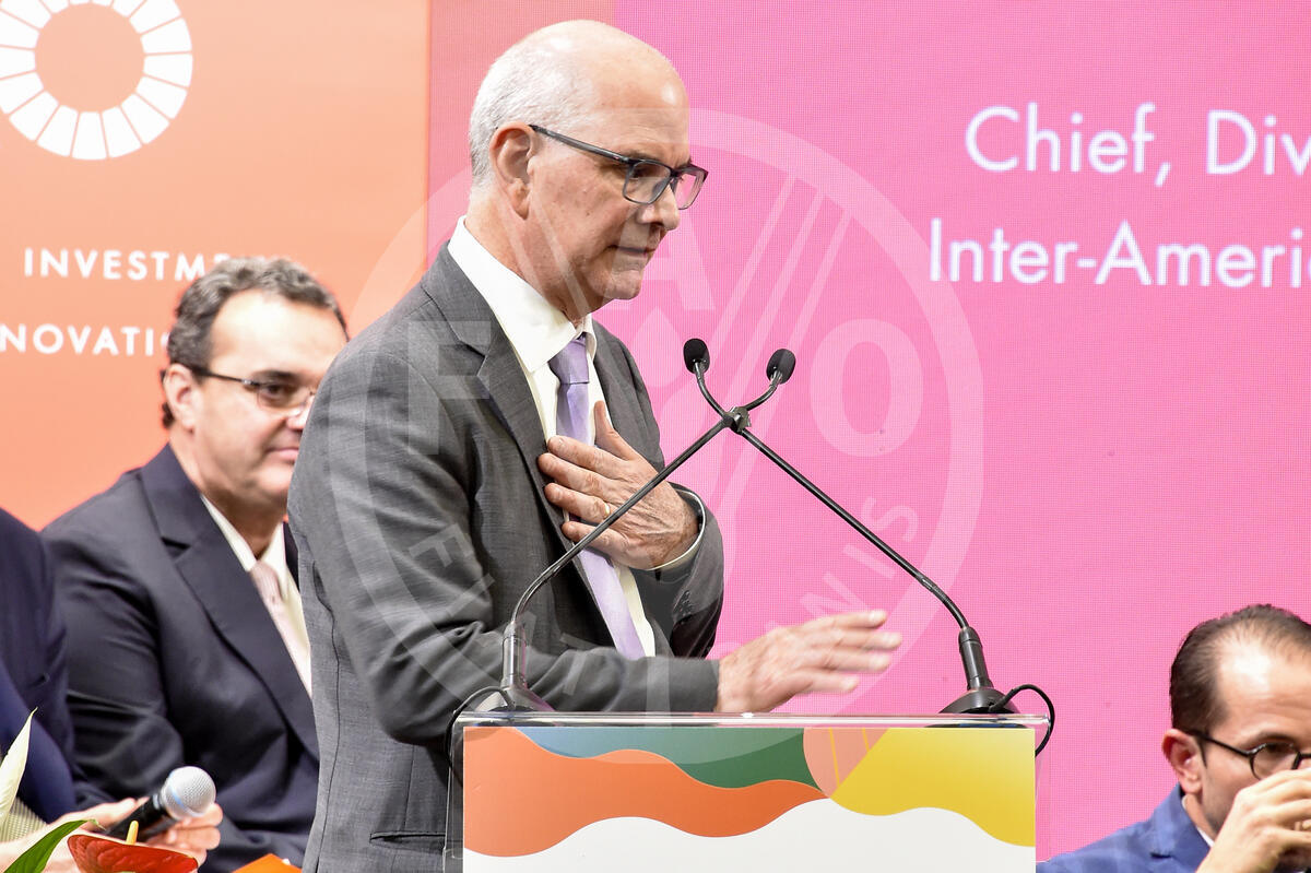 15 October 2024. Red Room, FAO Headquarters, Rome, Italy. Pedro Martel, Chief Division for Agriculture at the Inter-American Development Bank, talks at the World Food Forum Presentation of the Hand-in-Hand country investment plans for Colombia and the Dominican Republic