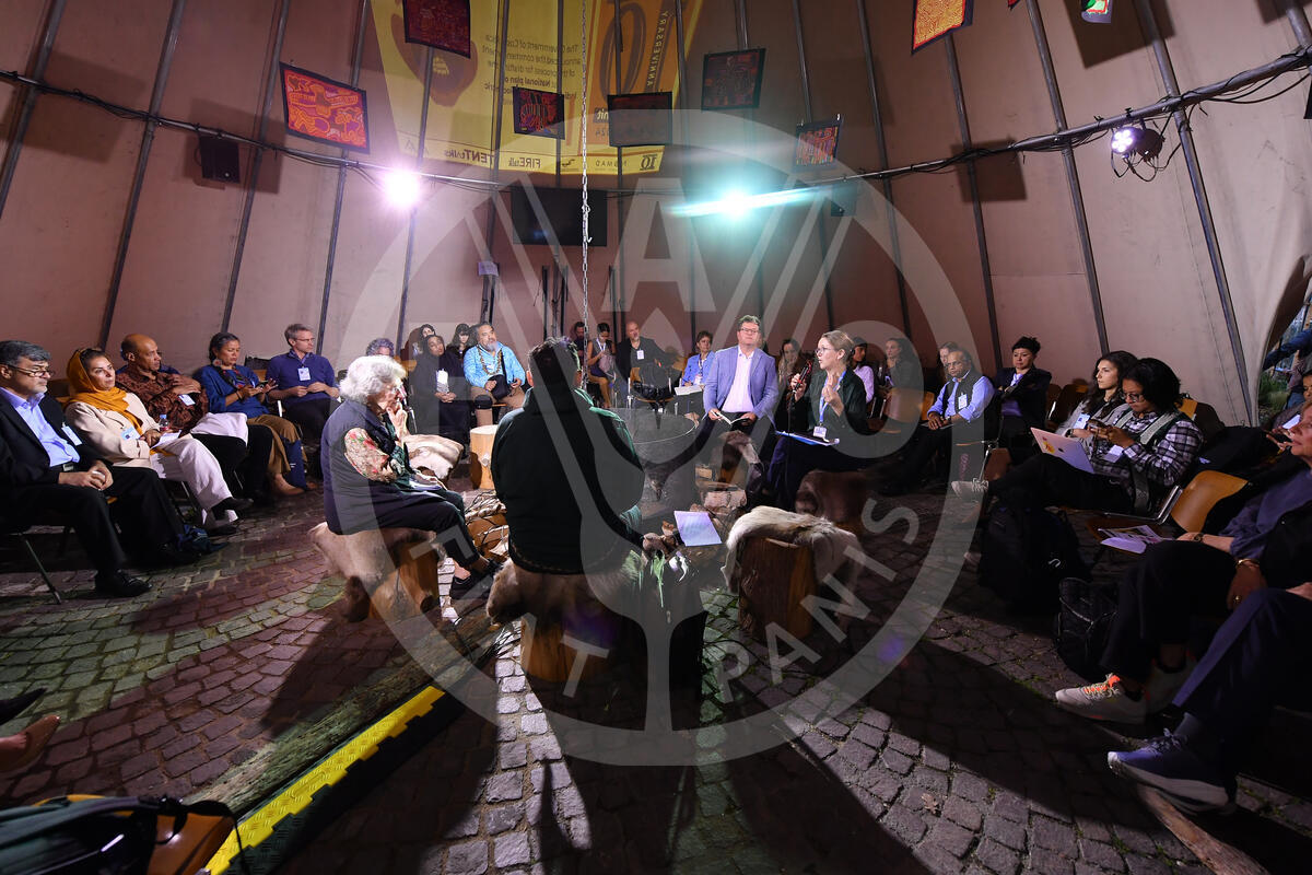 14 October 2024. Indigenous Youth Territory, FAO Headquarters, Rome, Italy. FIREtalk inside the Indigenous tent.