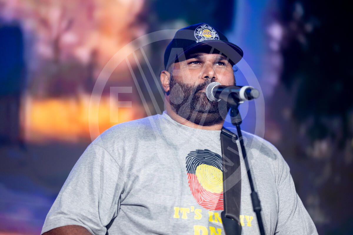 14 October 2024. Sheikh Zayed Centre, FAO Headquarters, Rome, Italy. The Australian band Family Shoveller performs with traditional Australian instruments at the WFF Youth Concert.