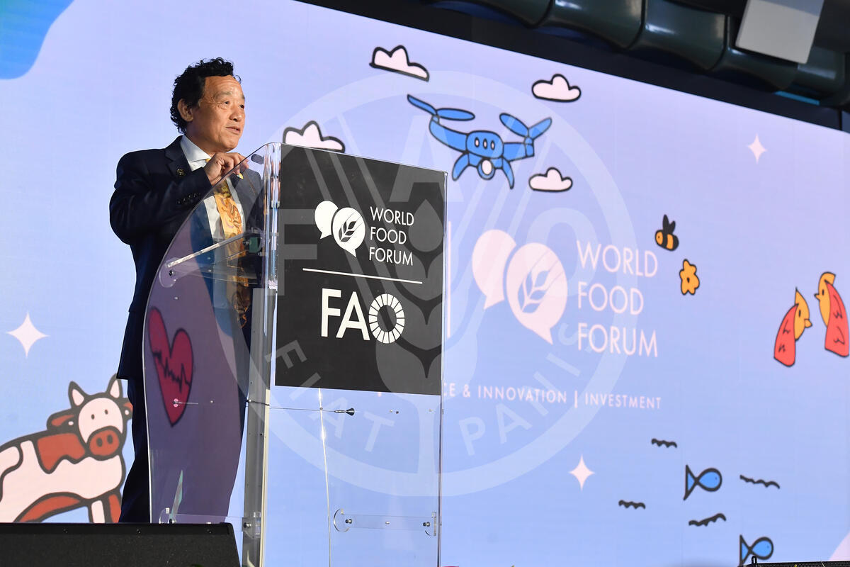 14 October 2024. Plenary Hall, FAO Headquarters, Rome, Italy. FAO Director-General QU Dongyu addresses the World Food Forum Youth Assembly Opening Ceremony.