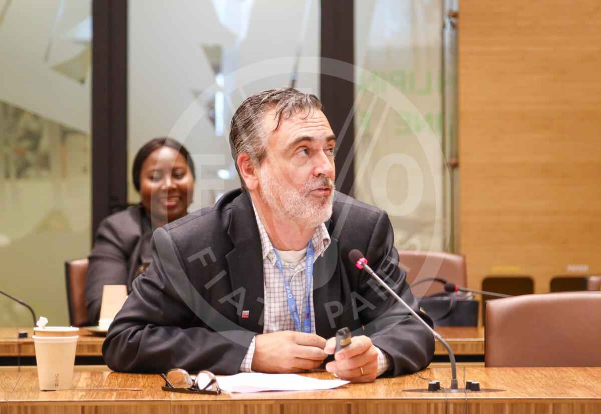 17 October 2024. Philippine Room, FAO Headquarters, Rome, Italy. Juan Echanove, Team Leader, FAO Right to Food, Rural Transformation and Gender Equality Division, gives his speech at the World Food Forum event on “The Right to Adequate Food: Tools for Youth.”