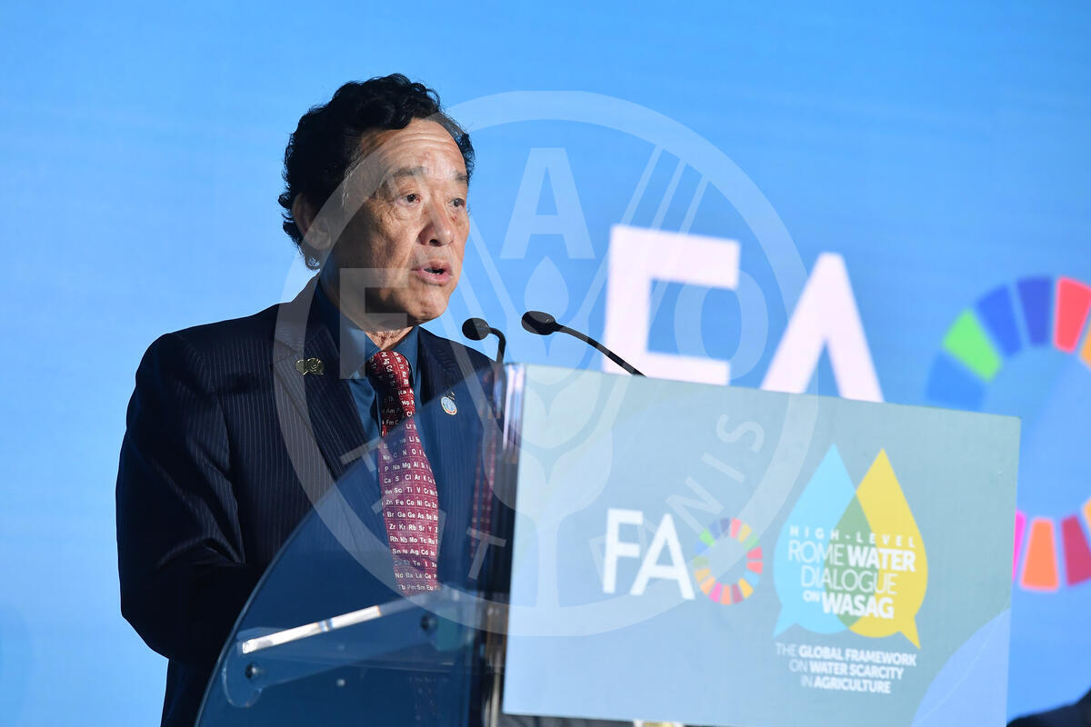 17 October 2024. Plenary Hall, FAO Headquarters, Rome, Italy. Dr Qu Dongyu, Director-General of FAO, gives his speech at High-Level Rome Water Dialogue on WASAG – the Global Framework on Water Scarcity in Agriculture.