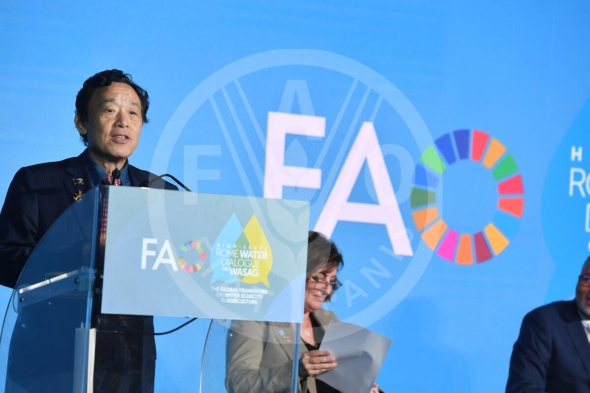17 October 2024. Plenary Hall, FAO Headquarters, Rome, Italy. Dr Qu Dongyu, Director-General of FAO, gives his speech at High-Level Rome Water Dialogue on WASAG – the Global Framework on Water Scarcity in Agriculture.