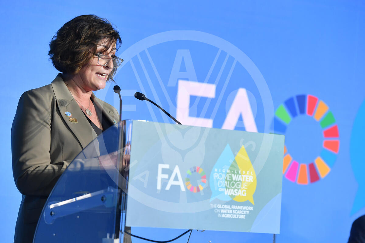 17 October 2024. Plenary Hall, FAO Headquarters, Rome, Italy. Beth Bechdol, Deputy Director-General Food and Agriculture Organization of the United Nations (FAO), gives her speech at High-Level Rome Water Dialogue on WASAG – the Global Framework on Water Scarcity in Agriculture.