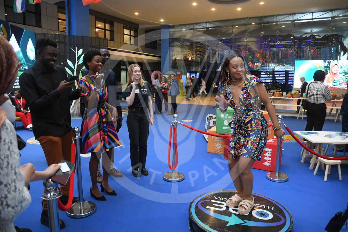 17 October 2024. Exhibition Booth, Atrium, FAO Headquarters, Rome, Italy. World Food Forum attendees enjoying the Atrium exhibitions.
