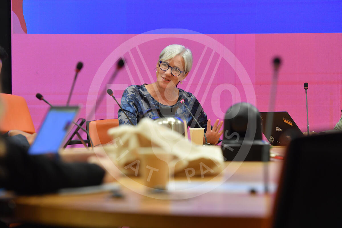 17 October 2024. Ethiopia Room, FAO Headquarters, Rome, Italy. Vera Agostini, Deputy Director of the Fisheries and Aquaculture Division (FAO), gives her speech at Aquatic Food System ( Thematic Youth Assembly Session).