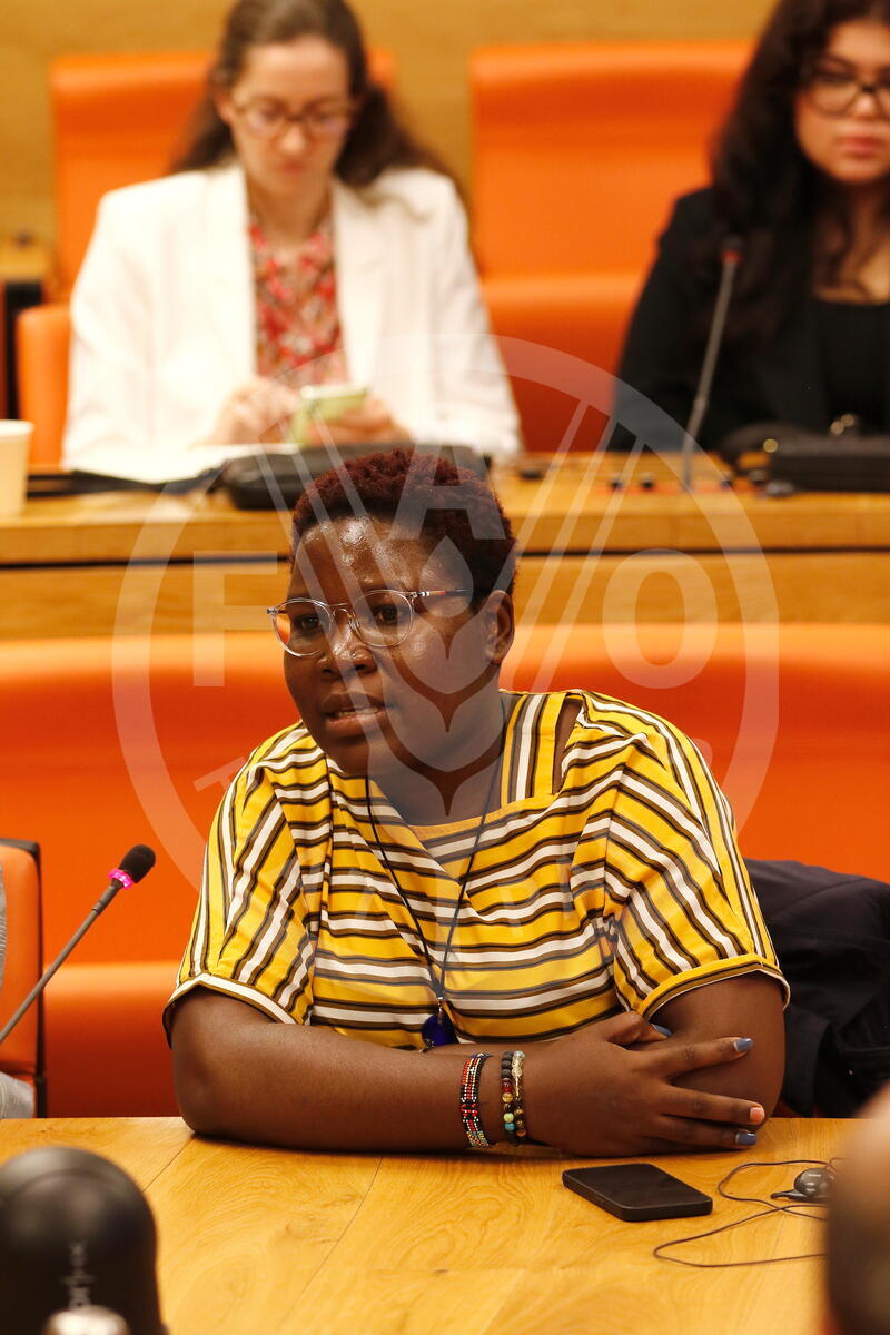17 October 2024. Ethiopia Room, FAO Headquarters, Rome, Italy. Juliet Grace Luwedde, UNCCD Youth Caucus, gives her speech at United Nations Convention to Combat Desertification (Thematic Youth Assembly Session).