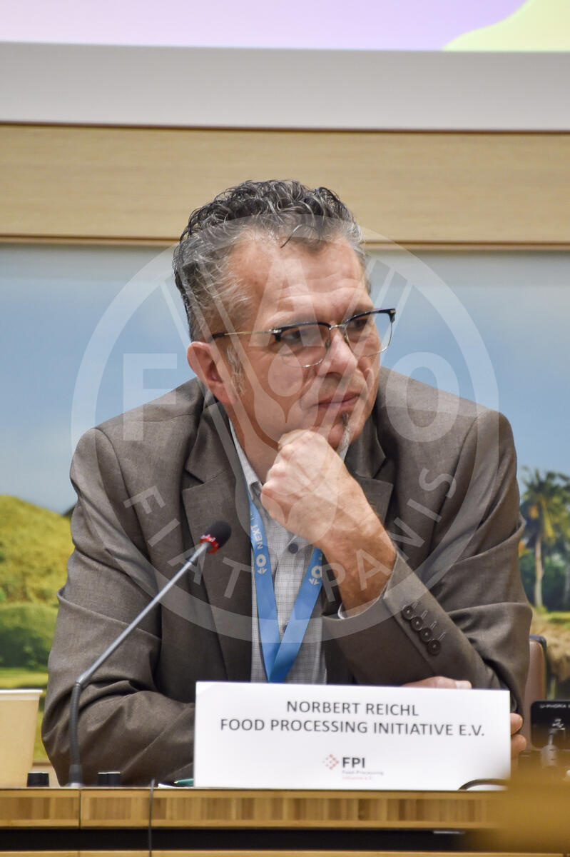 17 October 2024. Philippine Room, FAO Headquarters, Rome, Italy. Norbert Reichl, Managing Director of Food Processing Initiative e.V., at the "Digital Innovation in Food Processing: Catalyzing Change!" session.