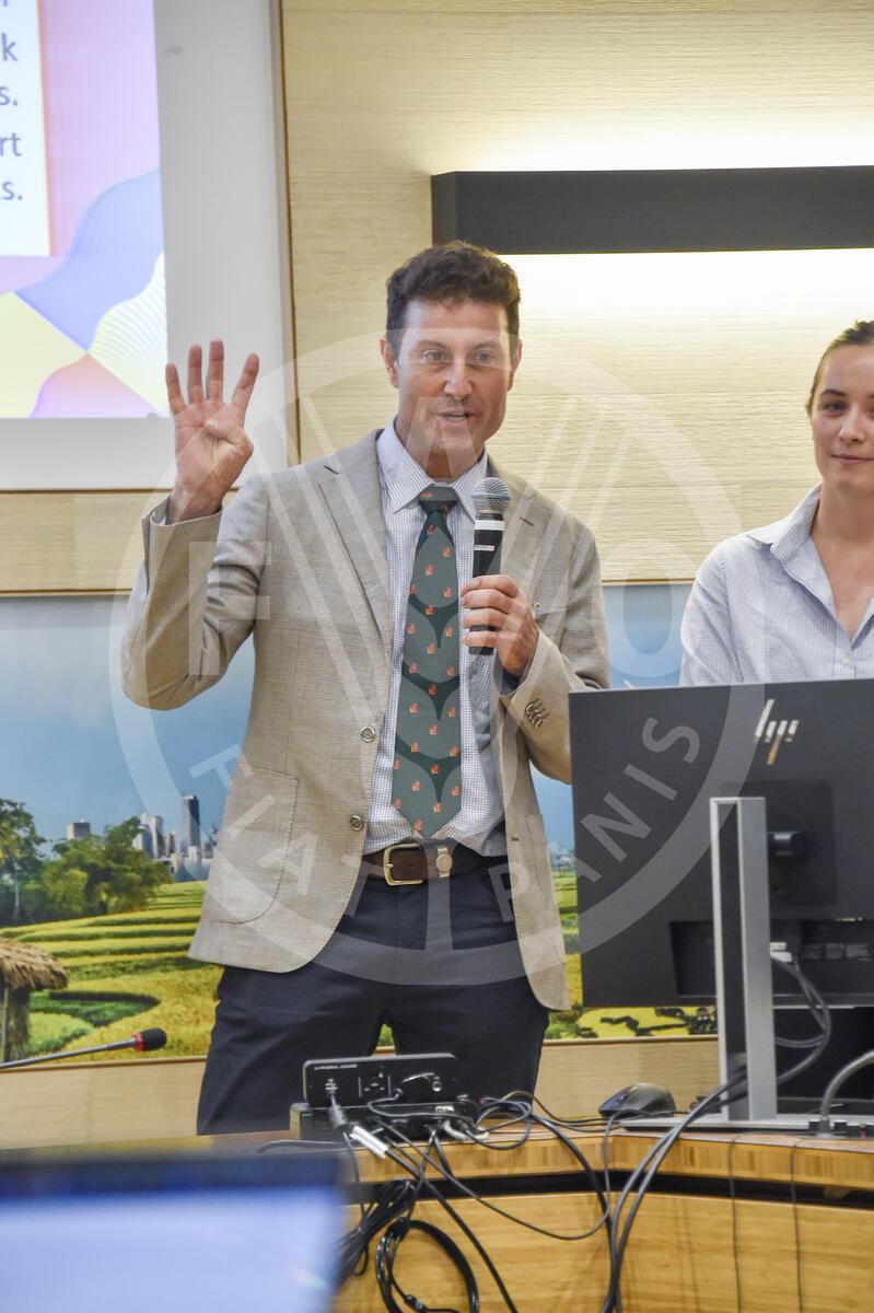 17 October 2024. Philippine Room, FAO Headquarters, Rome, Italy. Michael Taylor, Nuffield Farming Scholarships Scholar, gives his speech at "How to build and leverage an international network for maximum impact".