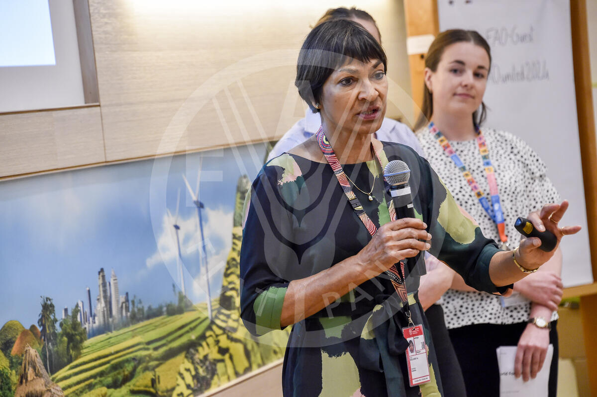 17 October 2024. Philippine Room, FAO Headquarters, Rome, Italy. View of an attendee speaking at "How to build and leverage an international network for maximum impact".