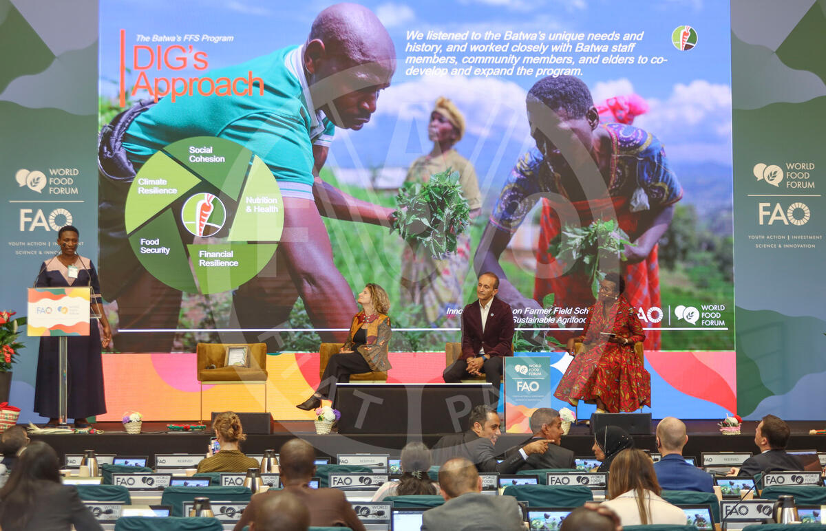 17 October 2024. Green Room, FAO Headquarters, Rome, Italy. Gloria Mushabe gives her speech at the World Food Forum’s Celebrating local innovations to support transitions to sustainable agri-food systems: Farmer Field Schools Innovation Award.