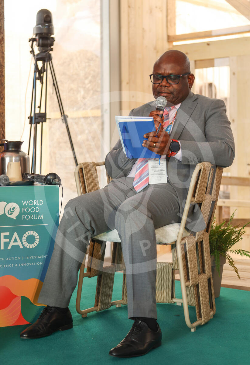 17 October 2024. Farm Venue, FAO Headquarters, Rome, Italy. Pierre Taty, moderates the World Food Forum Equitable access to and use of land, water, and other natural resources event.