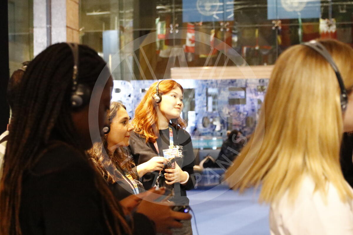 16 October 2024. Culture Corner, FAO Headquarters, Rome, Italy. At the World Food Forum 2024, on World Food Day, participants and delegates unwind during a silent disco held after the days proceedings.