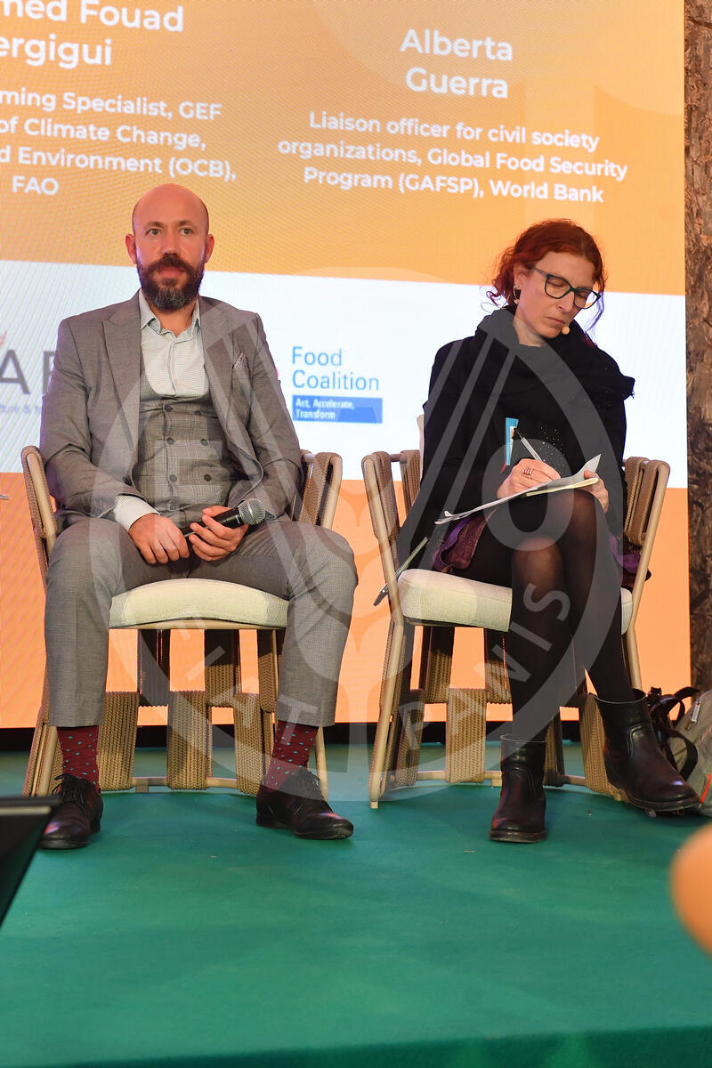16 October 2024. Farm Venue, FAO Headquarters, Rome, Italy. View of the speakers of the Investing in Family farming event