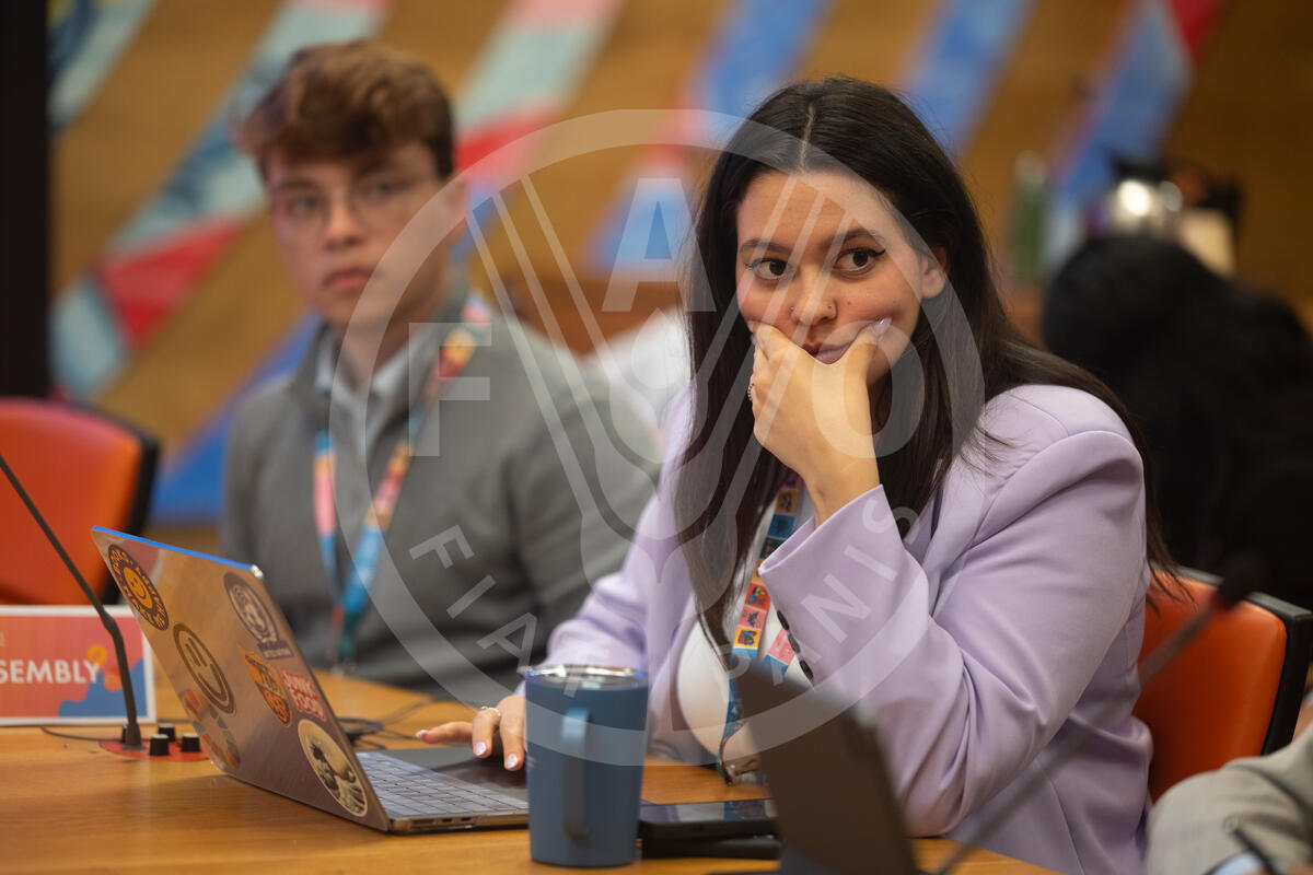 16 October 2024. Ethiopia Room, FAO Headquarters, Rome, Italy. View of a speaker of the Young Parliamentarians Roundtable.